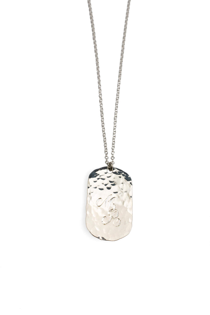 • Chic and rock, this silver military tag is designed and hand hammered in London to create a stylish yet slightly rough finish.