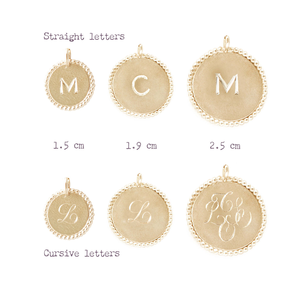 • This gold pearled pendant can be engraved on both sides with a monogram and/or a meaningful symbol or blason.